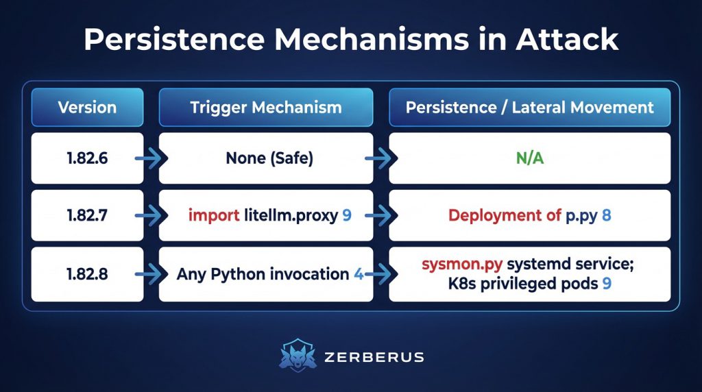 In version 1.82.7, the attackers injected 12 lines of obfuscated, base64-encoded code into the litellm/proxy/proxy_server.py file.2 This payload was designed to trigger during the import of the litellm.proxy module, which is the standard procedure for users deploying LiteLLM as a proxy server. While effective, this required the package to be active to execute its malicious logic.9Version 1.82.8, however, utilised the much more aggressive .pth file mechanism. The attackers included a file named litellm_init.pth (approximately 34,628 bytes) within the package root.9 In Python, .pth files are automatically processed and executed during the interpreter’s initialisation phase. By placing the payload here, the attackers ensured that the malware would fire the second the package existed in a site-packages directory on the machine, whether it was imported or not.4 This mechanism is particularly dangerous in environments where AI development tools or language servers (like those in VS Code or Cursor) periodically scan and initialise Python environments in the background.5